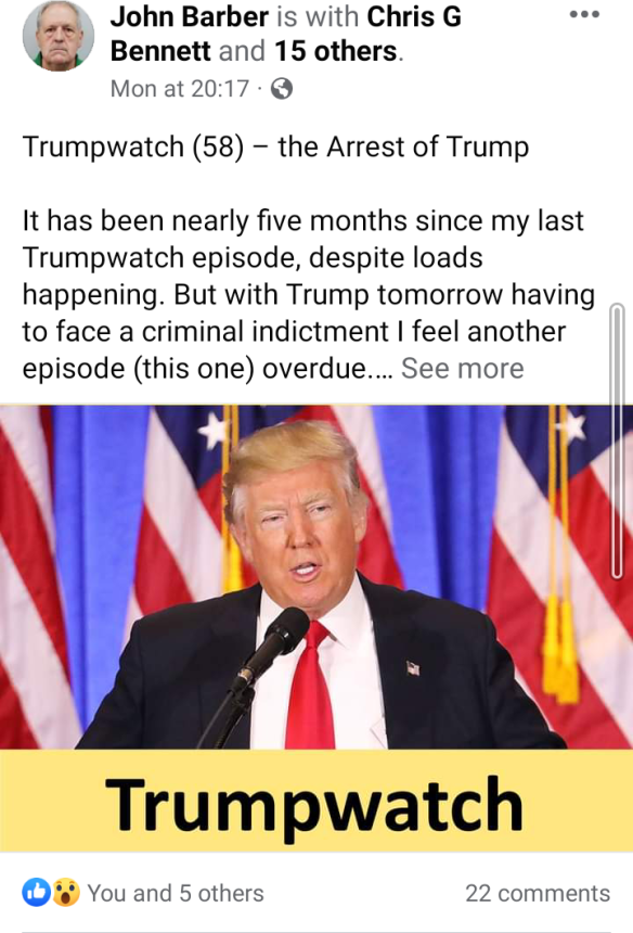 It has been nearly five months since my last Trumpwatch episode “Trumpwatch (57) – Trump announces his Presidency Campaign for 2024”, during which time oceans have gone under the proverbial bridge, but given the not unexpected headline of what may very soon happen, methinks another episode is overdue [continue at…] Trumpwatch (58) – the Arrest of Trump — JRB Publications