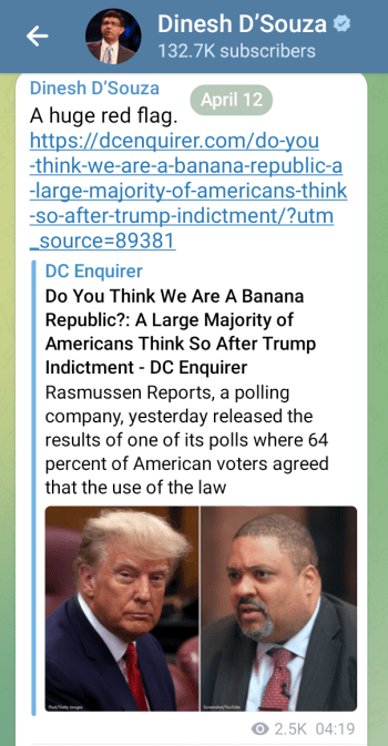 …Alvin Bragg, acting as the Biden DOJ’s cat’s-paw, sanctimoniously declared that Trump somehow misled the 2016 voting public through the 2017 bookkeeping entries the indictment alleges while Joe Biden’s supporters in Silicon Valley and the intelligence community used all the powers of the state and millions of dollars to suppress the Hunter Biden laptop story in 2020.  They too, have been excused…