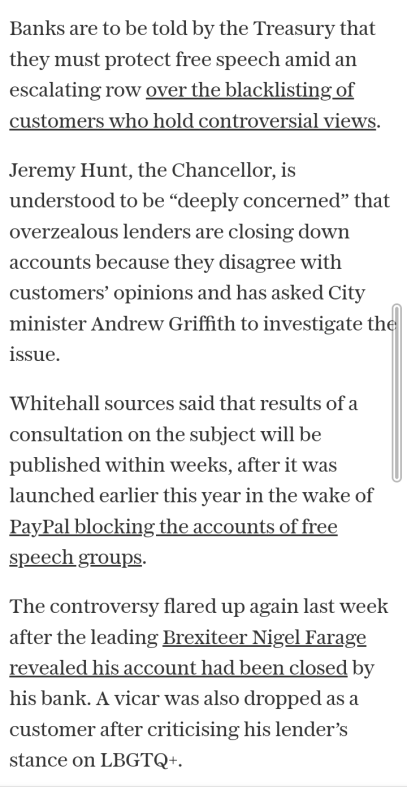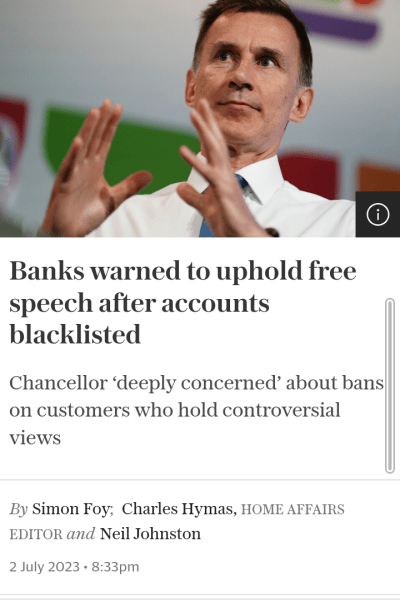 In case you missed it, Friday saw a warning of the introduction of full-fledged fascist Finance. It gained international attention but yesterday the Chancellor of the Exchequer wisely instructed the Treasury to protect free speech!!