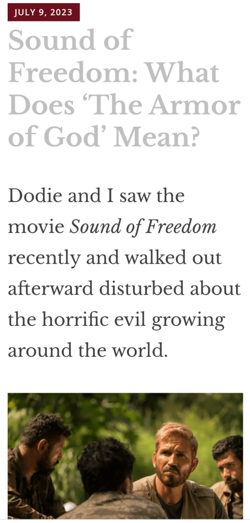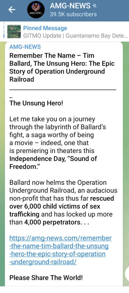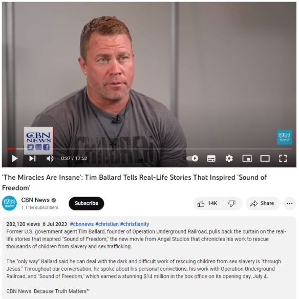 Tim comments thereto: “Tim Ballard tells Real-Life Stories that inspired Sound of Freedom https://www.youtube.com/watch?v=n1kPrJew2RY“