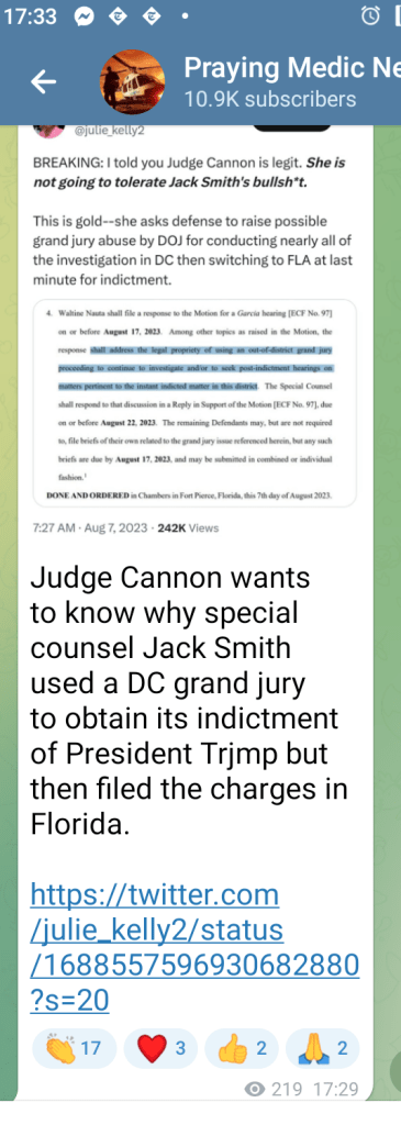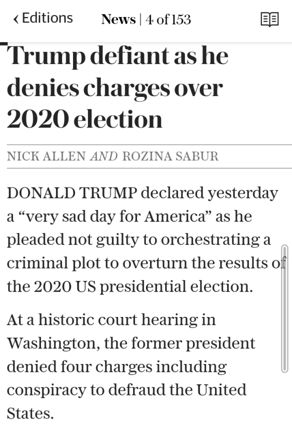 The usual blog-day Thursday is very different today in view of changes to our schedule this week and so with only an hour I offer this miscellany of items. First, my birthday number 22 just keeps on popping up as though by ‘God-incidence’. For example, this from The Telegraph’s coverage last week of Donald Trump’s arraignment: