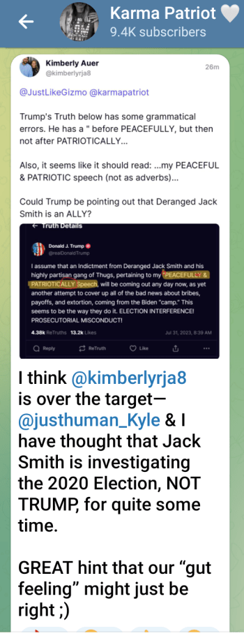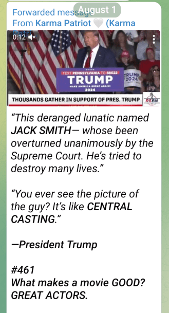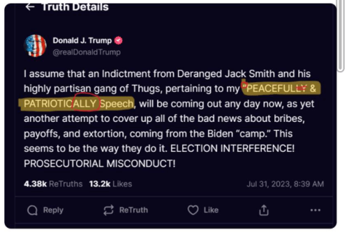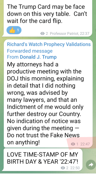 After hearing about the Indictment of Donald Trump I remarked here or on my Telegram that a court appearance would enable him to present his case and all evidence in court. After all, he’s consistently claimed he “has it all” and this includes data collected through military intelligence because he’s a “wartime president” – and is still Commander-in-Chief, according to documentation and events monitored in Facebook and Telegram by veteran Derek Johnson.