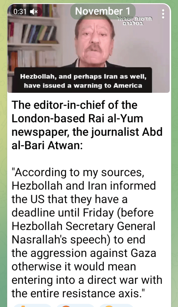 - If Hezbollah where to attack fully now, Israel is mobilised and ready; if they don’t,
