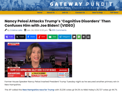 “Let me just say that I’m not gonna spend too much time on Donald Trump’s cognitive disorders, but what I am going to say…he did try to say that Nikki Haley did not allow the national guard to come but it was Nancy Pelosi! It was nobody! It was Joe! It was Donald Trump!” Pelosi said slurring her words.’