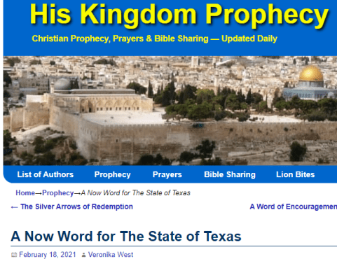 Praise God! Why didn’t I see this before? This word by Veronica West bears witness with my spirit. This word lines up with what Derek Johnson has been saying: the new federal capital of the United States may move to the state of Texas.