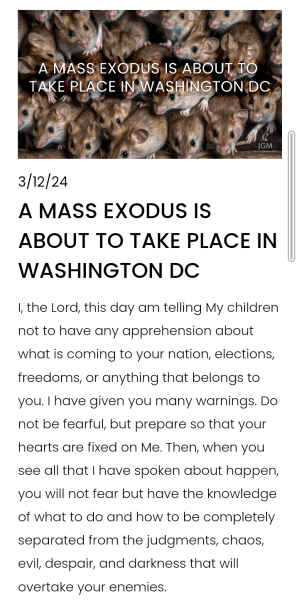 “…A mass exodus is coming in your capital, oh United States, and not one your enemies wanted. I am forcing them out and removing them with My hand. Nothing will stop this coming exodus, saith the Lord.