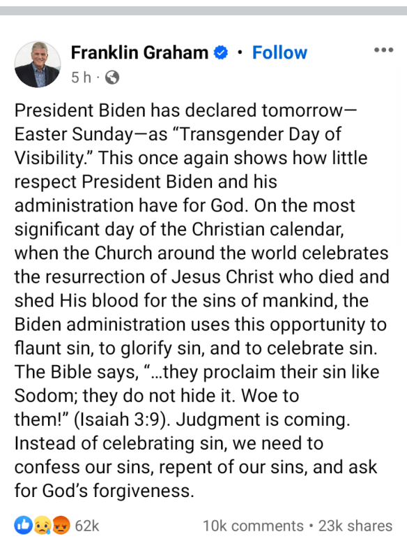 NB, Biden’s Proclamation shows his definite personal anti-scriptural stance. SO, Lord have mercy on him and send Holy Spirit to thoroughly convict him and bring public repentance and penance:
