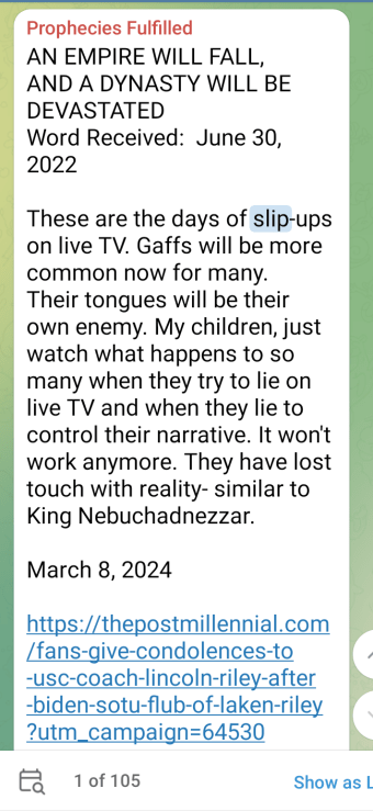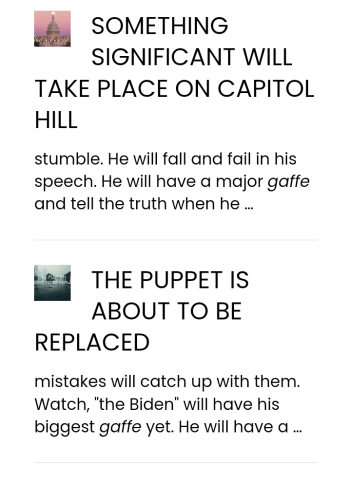 In her prolific receipt of prophetic words from the Lord of a politically relevant nature Julie Green has delivered many references to Biden as false president but whose slips of the tongue” will reveal truths. His reputation is of being not only a liar but also gaffe-prone! (Click here to scroll through search ‘Gaffes’) For example,