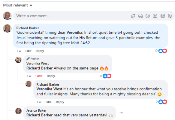Later that Tuesday, after returning home, I get to check Facebook and, as her postings don’t appear on my Fbk home-screen, search for Veronika West’s Ignite Ireland Ministry and AGAIN AM ASTONISHED to discover she brings ‘God-incidental’ confirmation from the Lord. Her opening words recount being taken into a dream wherein,