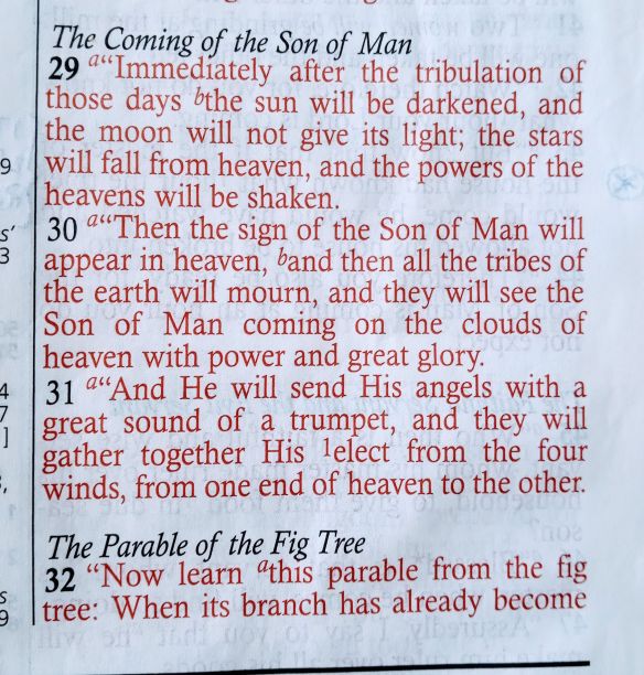 I closed part 1 of this Briefing: “It being a Monday – my catch-up day – YET MORE WAS TO COME…!” because the next morning I returned to ‘The Olivet Discourse’ and Jesus’ predicting the return of Days of Noah along with recalling modern prophets and Catholic visionaries increasing references to a coming global darkness.