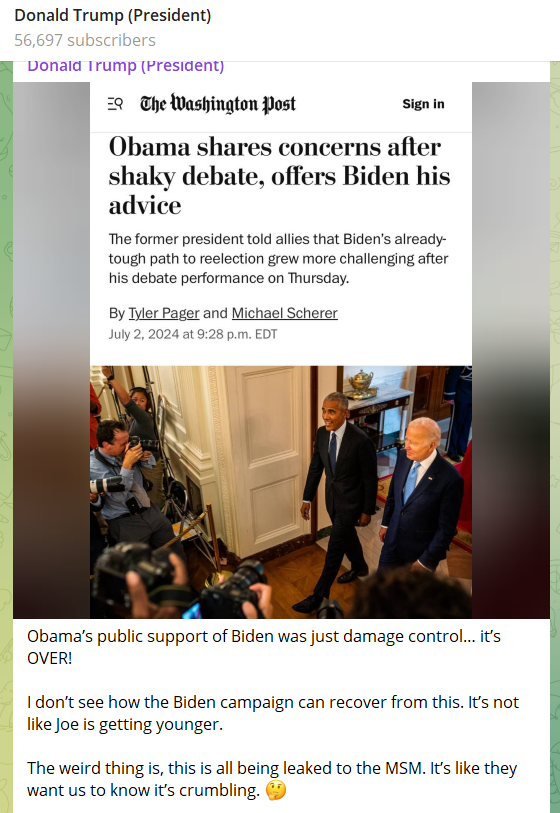 And here’s Obama, ‘No, no, no, we keep Biden in there’ because it’s all about power at all costs. That’s why they’re trying to destroy [former] President [Donald] Trump.