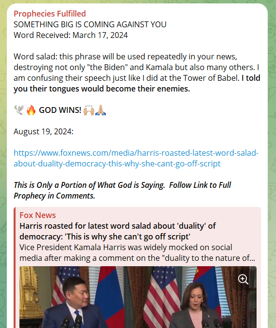 The anonymous prophet publishing under the pseudonym ‘TruthWave23’ on Telegram posted this earlier prophecy along with the news:
