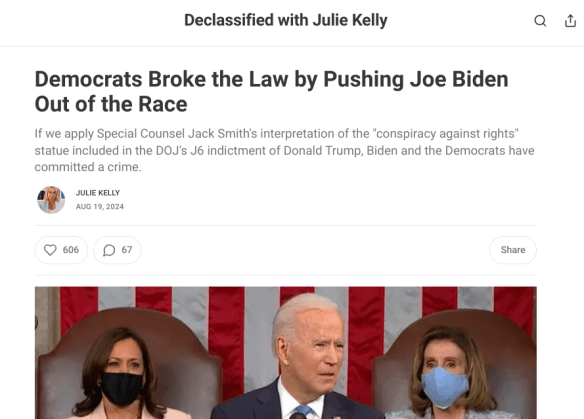 ALSO on that very same day, renowned Investigate journalist Julie Kelly published her excellent in-depth article shown below wherein she makes striking assertions related to the closure of that dream.: