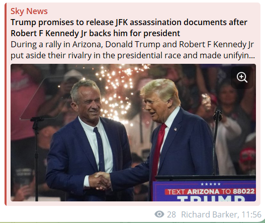 ‘Robert Kennedy Junior says that he took a private phone call with Trump after a lone gunman nearly killed him at his rally. He says he has come to find out that they agree about more things than he knew.