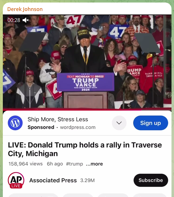 Here’s military veteran Derek Johnson’s ‘take’ on his Telegram: