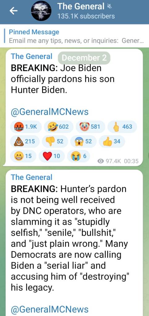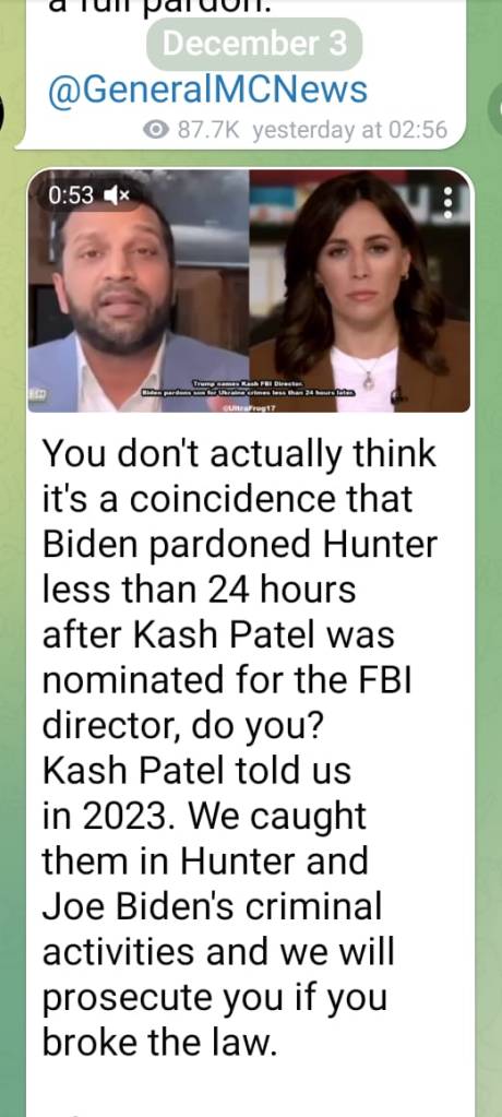 “Joe Biden’s blanket pardon of Hunter covers the entire period of the 2014 CIA coup in Ukraine when Hunter was appointed to the board of a Ukrainian gas company. This means he can’t be investigated for any criminal activity during this time-frame – Are you paying attention yet?