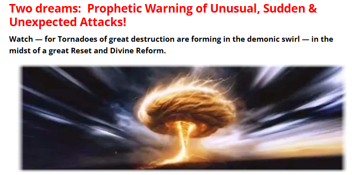 Watch — for Tornadoes of great destruction are now forming in the demonic swirl, in the midst of a great Reset and Divine Reform within The Nations!”