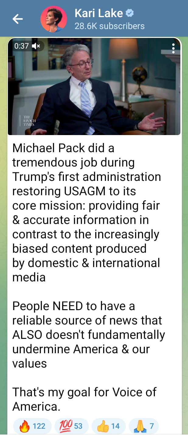 Hence, when Kari’s election bid failed I sensed the Lord had something much greater for her and I didn’t know of her background as a journalist and that President Trump nominated her to head-up Voice of America, as reported on His Kingdom Prophecy .