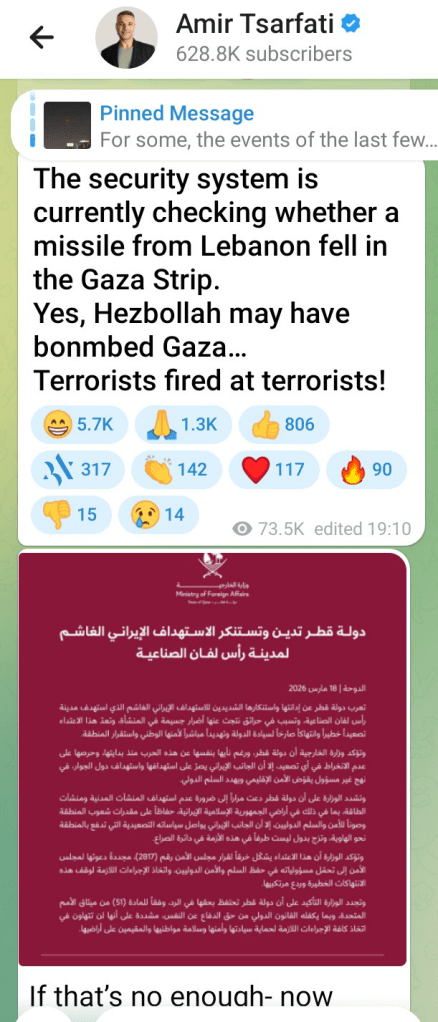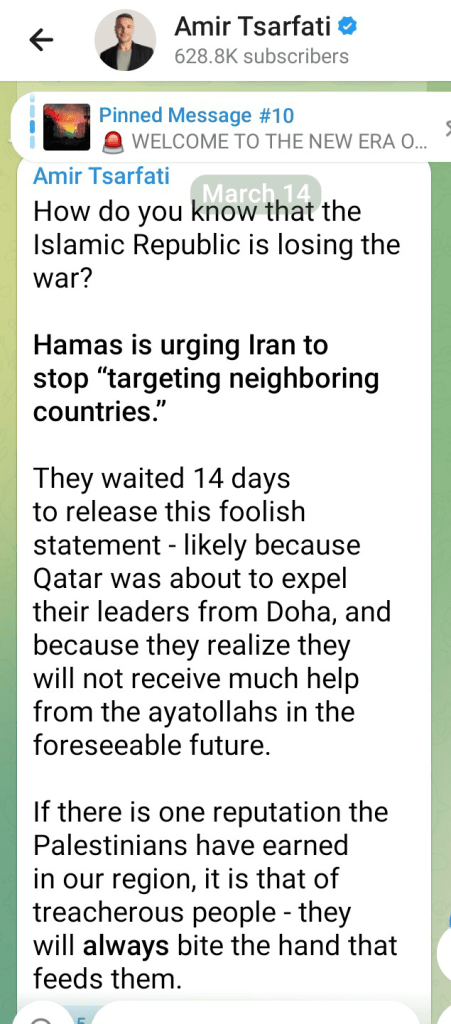 On Saturday 14th March, I noted Amir Tsarfati in Israel posted this ‘heads-up’ about one of the regime’s proxy terrorist groups followed by its official confirmation: