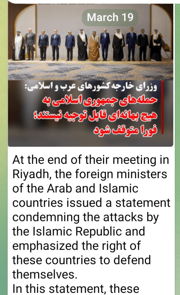 In the final statement of the Riyadh meeting, it was said that the “aggression” of the Islamic Republic cannot be justified in any way. The Arab and Islamic countries also announced that the attacks of the Islamic Republic were directed at residential areas and civilian infrastructure.