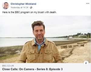 I recalled having been in touch with Christopher and blogged on 7th May 2020 about his appearance on BBC’s ‘Close Calls on Camera’ with Nick Knowles, in my asking Was Pastor’s Fatal Heart Attack to Prevent God’s Warning to Britain and Apostate Church?