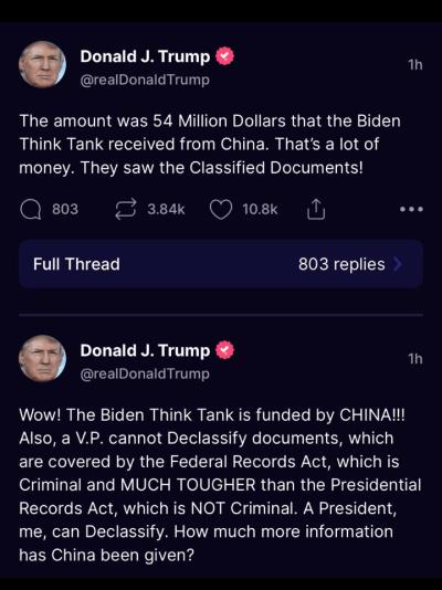 Since the weekend there’s been a lot of news and commentaries on the discovery of a cache of classified papers that Biden as Vice-President to Obama, held on unofficial premises. Remember his Dept of Justice’s Mar-a-Lago farrago?