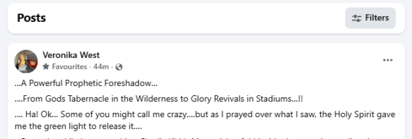 “Info – I came across this👆on X and immediately V West prophecy came to mind …I’m not sure when that was it must have been about a couple of years back. 🙏.”