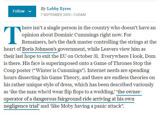 3 > In September an article about the life, objectives and ambitions of PM’s strategist Dominic Cummings reveals that the epithet of ‘bulldozer’ applies to him too!  He also fulfills my May 2016 prophecy of the Lord’s exposing rotten politics (#10).