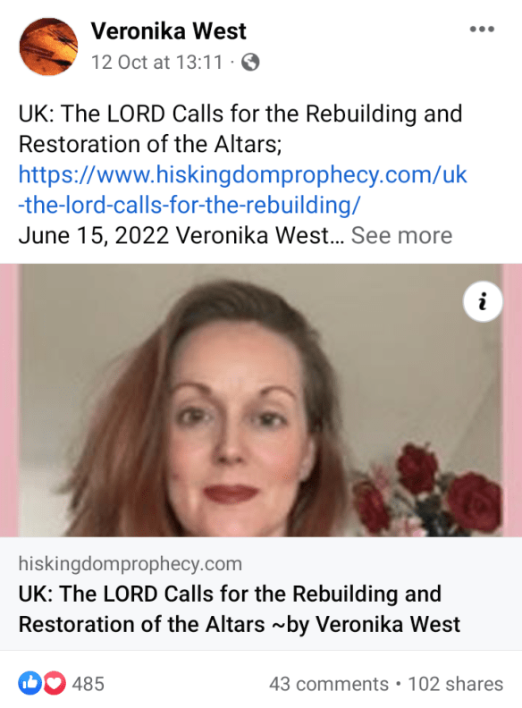 His Kingdom Prophecy publishes her text as America and 60 Year-old Prophecy along with link to her Ireland: Satan Has Taken a Census and to An Urgent Word for the Church of the United Kingdom. At the foot of the first link HKP’s Angus Mackillop provides links to download this extensive word as a PDF file or MS Word document.