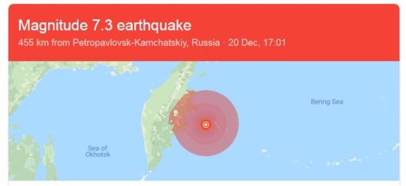 Kamchatka peninsular in far eastern Russia, south of Bering Straits