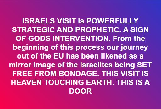 “I’m not sure how to take this really I do think it’s important. I’ve asked Holy Spirit to lead me but this is so far all really got. It could be it’s about brexit, but I think it’s far deeper, about this being a significant time for our nation spiritually, and how we treat Israel.
