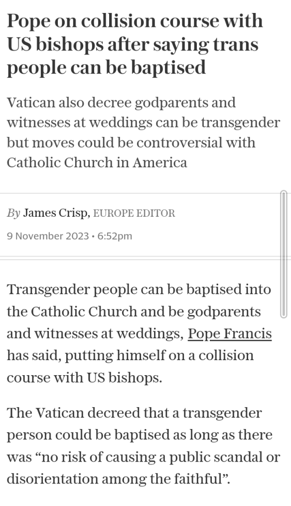 Indeed, I thought confirmation emerged with Friday’s news of Justin Welby’s apology for what was wrongly taken as a personal slight by the lead advocate in his Church’s move towards liturgical accommodation of trans-sexuality.