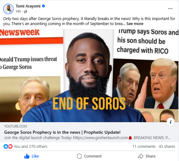 “George Soros, and his wonderful Radical Left son, should be charged with RICO because of their support of Violent Protests, and much more, all throughout the United States of America. We’re not going to allow these lunatics to rip apart America any more, never giving it so much as a chance to ‘BREATHE,’ and be FREE. Soros, and his group of psychopaths, have caused great damage to our Country! That includes his Crazy, West Coast friends. Be careful, we’re watching you! Thank you for your attention to this matter!”
