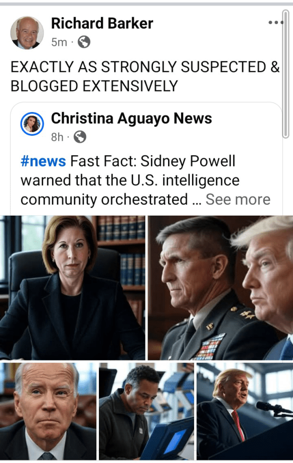 ‘Consider: Trump’s willingness to issue a federal Presidential Pardon for Tina Peters provides confirmation that there is in fact a wide-ranging, whole-of-government, *ongoing, federal* criminal investigative effort in the background, targeting both the overthrow of the US government carried out in the 2020 Election, and the multi-year Russiagate coup that prepared the soil for it. [RB. Hence Trump was not involved in Ukraine]