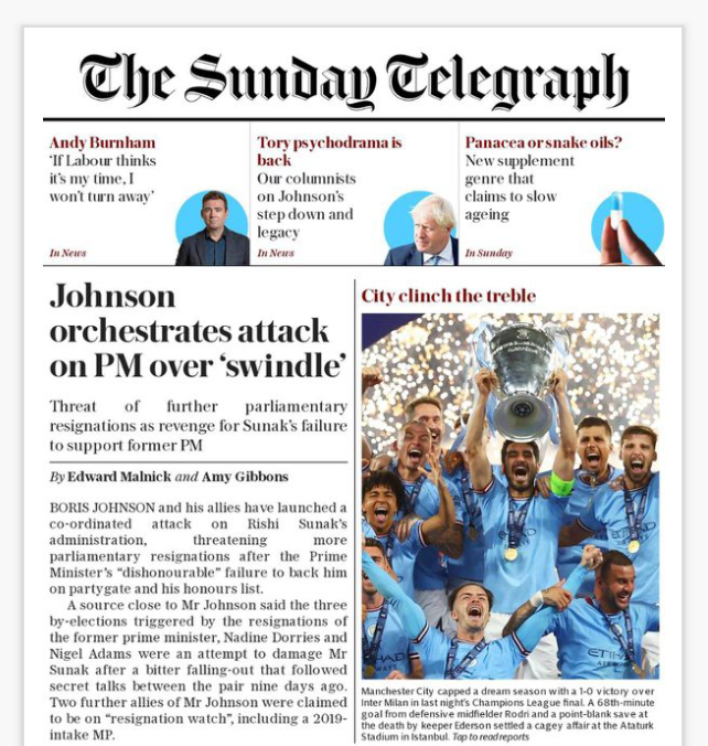 Now back to this side of the ‘Pond’ this morning’s main headline in the Daily Telegraph brings a more applicable validation for Christoper Wickland’s prophetic words: