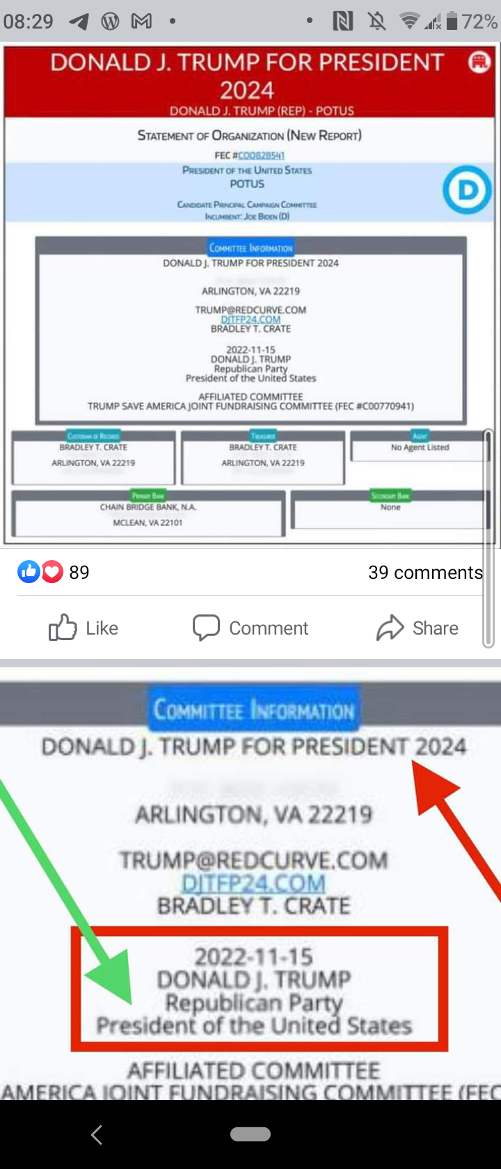- DJT did NOT say he was ‘Running for’ Election in 2024!