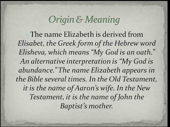 Then I heard these Words, ”Watch! For when My Elizabeth appoints My Elizabeth, it shall be as a Prophetic Sign that I AM bringing this Nation full circle!