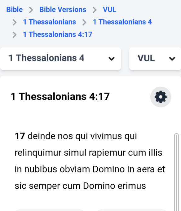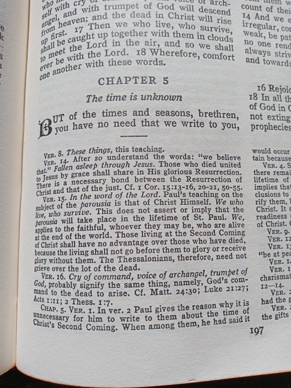 Next, check my boxed Bible received from my Godmother on my 12th birthday – the  Douai-Challoner translation from the Vulgate, ie authoritative Latin Bible translated late 4th Century by St Jerome. It refers to being ‘caught up’: