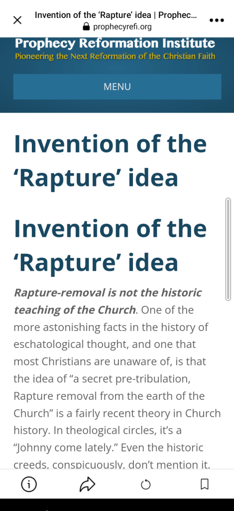 The opening gambit of this item below is wrong because The Rapture is part and parcel of Orthodox, Catholic and Reformed churches’ teaching (article is of historical interest):