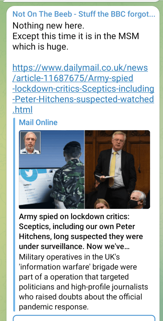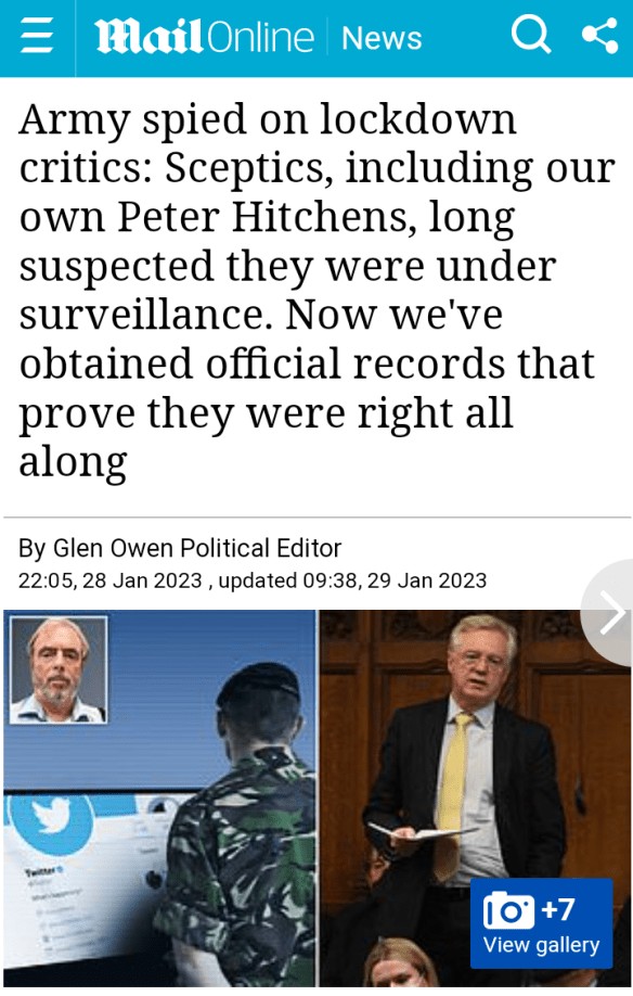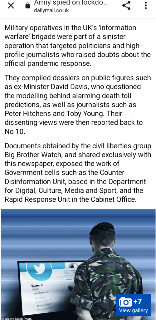‘A brave whistleblower stepped forward recently that the UK military was spying on its own citizens during the COVID pandemic.