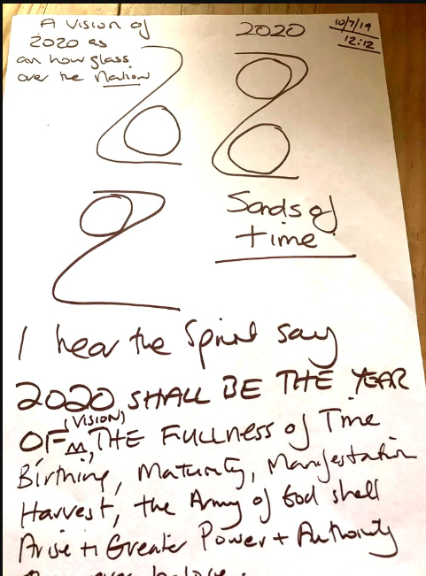 Then I heard these words, “Watch! The Sands of Time stand over the nations, for the year 2020 shall be a kairos year, a time of action and Kingdom Advancement in the earth.