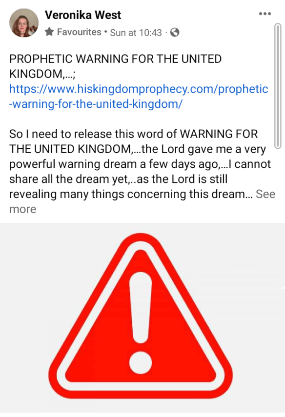 Around midday Veronika posted the following on Ignite Ireland Ministry and at His Kingdom Prophecy as below: