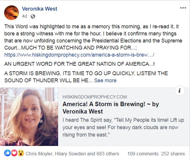 “There were two parts to the dream. The dream I shared part 1 and kept back part 2 . I felt that part 2 was not yet to be released. Amazing however, I woke the morning of Trump’s announcement, which had come late the night before [Thurs 1st Oct], which I had not seen, and felt that part 2 was to be posted. When I read news of his Covid result I was immediately arrested with the timing and indeed the content. God’s timing is amazing. Part 2 I believe was held back for that moment.”