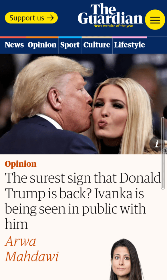 NB. Juxta-positioning of Daily Telegraph broadsheet’s articles on Trump and JFK’s family!!!