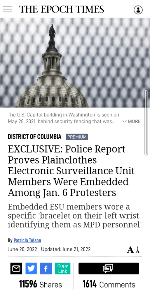 ‘While there is growing speculation that federal agents and Capitol Police were involved in instigating acts of violence during the Jan. 6, 2021 protests and recording responses for the purposes of entrapment, evidence now proves that “plainclothes” members of a special Electronic Surveillance Unit (ESU) were embedded among the protesters for the purposes of conducting video surveillance. Evidence also points to a day of security deficiencies and police provocation for the purpose of entrapment.
