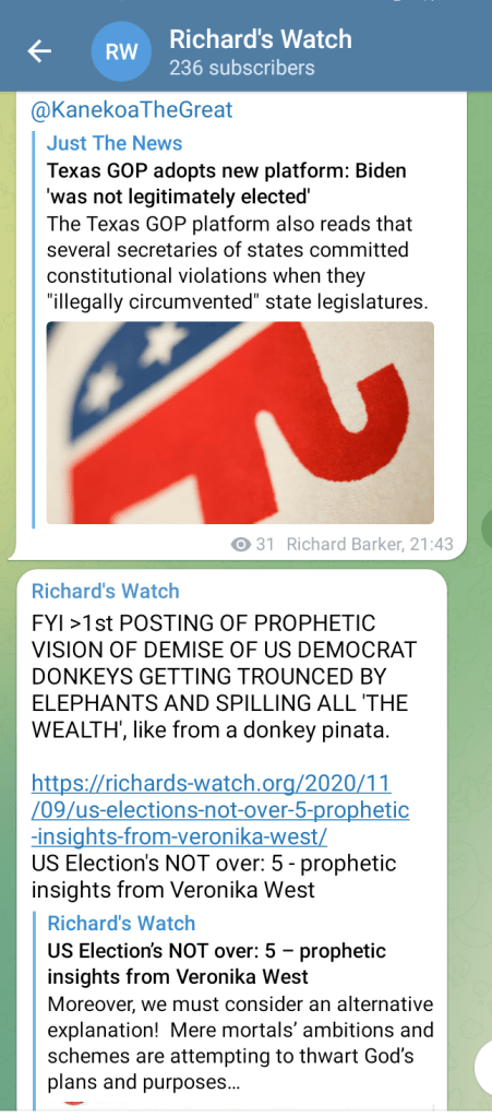 Here’s latest indicators of Veronika’s vision coming to pass, as shown in a few snippets from my Telegram channel of more news relating to US mid-term elections: