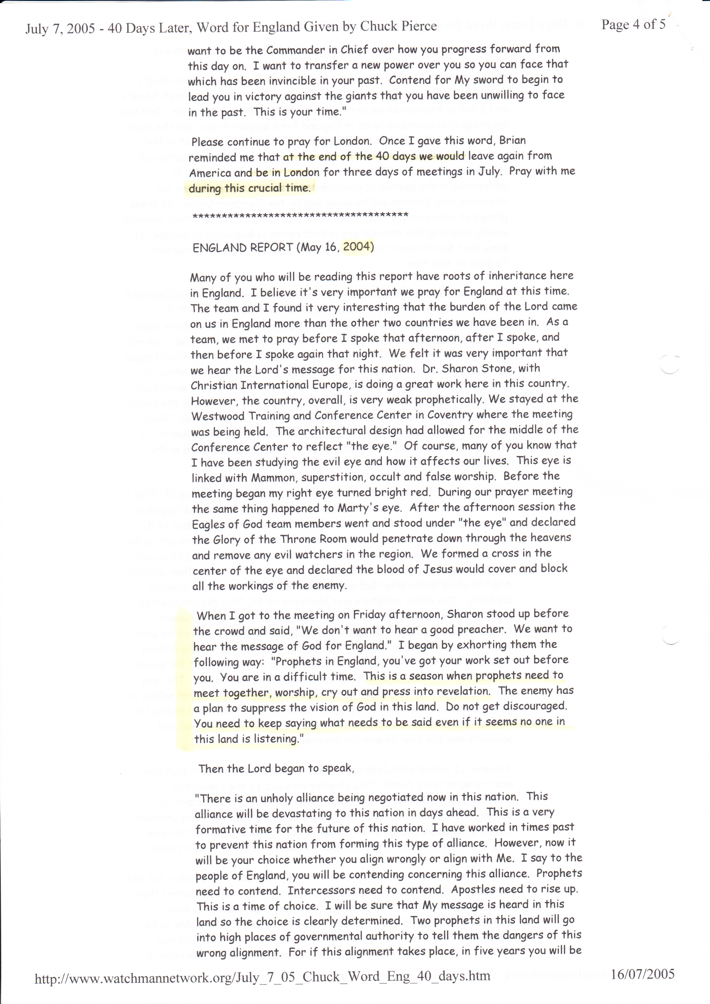 • 2010: Prophetic Word for Revival Alliance UK (2011)