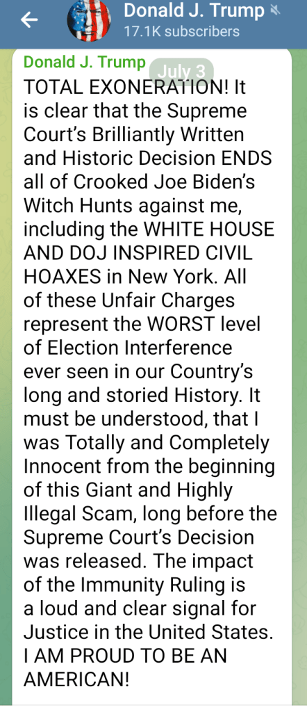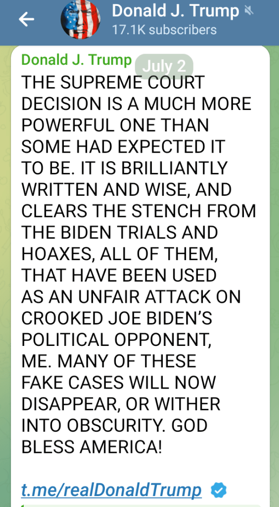 In light of the Ruling by the Supreme Court [SCOTUS] on the 1st July (7th Month) 2024, I submit The LORD is bringing our attention back to certain aspects of this Prophetic Word which is now coming to pass; keep watching and praying!