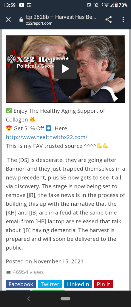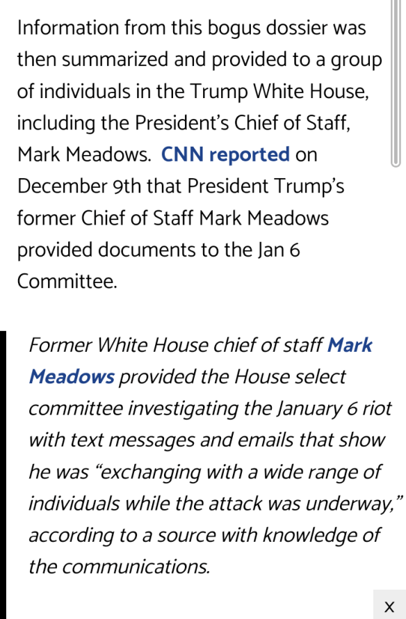 The J6 unselection committee hearing has a problem. It seems Barr and Trump changed Sec 230 and it is law and now the J6 committee is violation. Trump is now demanding equal time. I wonders what information he is going to present to the people. Every step of the way the [DS] will be falling into trap after trap until they cannot climb their way out of it. The clock is running down and the [DS] has no ammunition.:… Continue reading →