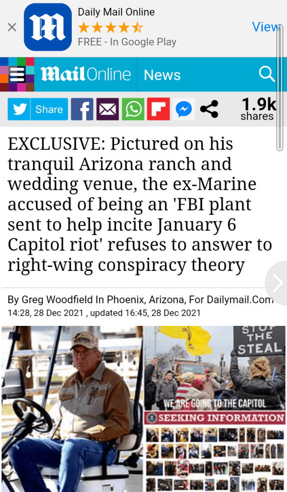 In capturing the lengthy latest developments I added a new category Capitol 6Jan for my 40-odd postings and noted this veritable tell-tale item of 15th January, only a week after the event and which makes a very suitable introduction to this deeply disturbing enticement and entrapment by federal agents: